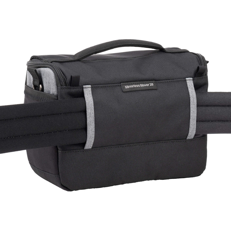 Mirrorless Mover 20 може да побере безогледален фотоапарат с 1-2 обектива до 24-70мм F/4 и аксесоари като главното отделение се затваря с цип и разполага с два подвижни подплатени разделителя като единия има специално място за смартфон. Чантата предлага бърз горен достъп до интериора, в който е разположен мрежест джоб за карти памет, батерии и други аксесоари. В предната част на Mirrorless Mover 20 се намира и джоб с цип за лични вещи и аксесоари като капака на чантата е с магнитно закопчаване и обхваща и двете отделения за по-голяма сигурност.