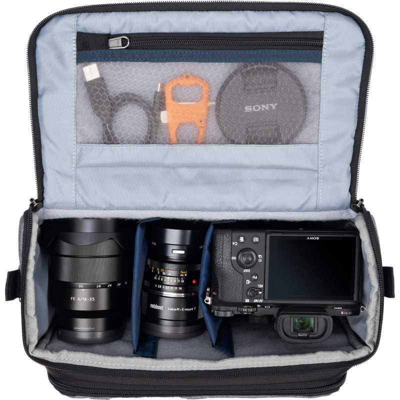 Think Tank Mirrorless Mover 30 V2 е компактна и удобна чанта за рамо, която има възможност да се носи и на колан, благодарение на предвидената за това халка в задната част на чантата.