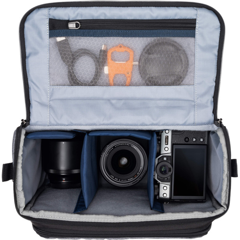 Mirrorless Mover 30 V2може да побере безогледален фотоапарат с 2-4 обектива до 70-200мм F/4 и аксесоари като главното отделение се затваря с цип и разполага с два подвижни подплатени разделителя като единия има специално място за смартфон. Чантата предлага бърз горен достъп до интериора, в който е разположен мрежест джоб за карти памет, батерии и други аксесоари. В предната част на Mirrorless Mover 30 V2 се намира и джоб с цип за лични вещи и аксесоари като капака на чантата е с магнитно закопчаване и обхваща и двете отделения за по-голяма сигурност.