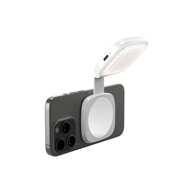 Устройството е снабдено с вградено огледало, което предоставя възможност за прецизно кадриране по време на снимане. В комплекта ще откриете и магнитен пръстен, който осигурява лесно и сигурно закрепване на светлината към устройства, които не поддържат MagSafe, като Android телефони и други подобни устройства.