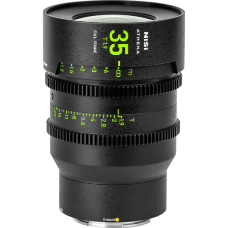 Висококачествен кинообектив NiSi ATHENA PRIME 35mm T1.9 е разработен за работа с пълноформатни сензори и оборудван с Sony E (FE) байонет, съвместим с професионални кинокамери. Конструкцията на обектива е насочена към създаване на изключително широки кадри с висока степен на детайлност и минимални оптични отклонения.