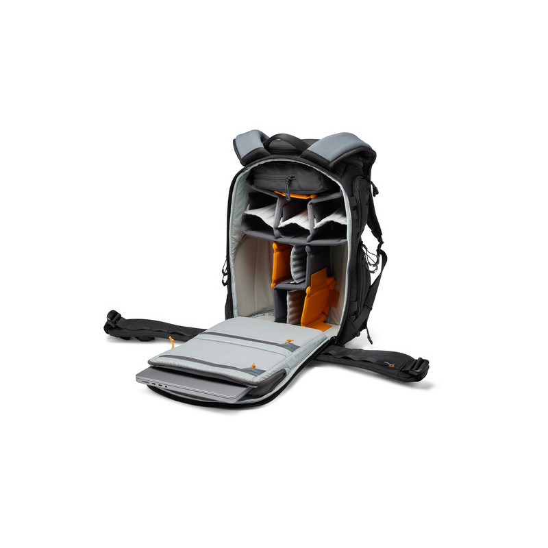 Раницата разполага с три различни начина за достъп до оборудването чрез странични панели, широко горно отваряне и пълен достъп от гърба, което позволява светкавично реагиране при снимки в движение. Вътрешността се организира чрез MaxFit делители, които могат да се конфигурират според индивидуалните нужди и особености на техниката. CradleFit отделение побира до 14-инчов лаптоп, защитен от удари и натиск.