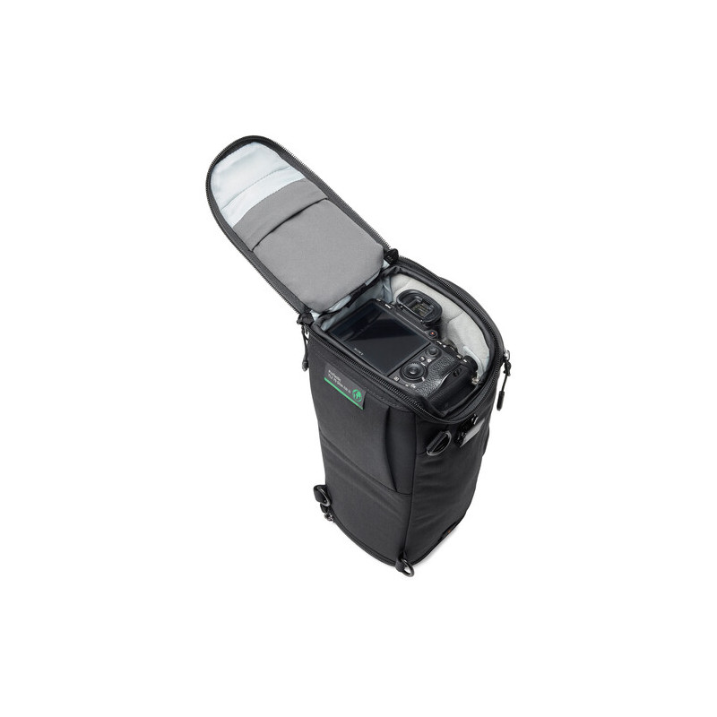 Горният отвор с цип по цялата дължина предлага бърз и удобен достъп до техниката. Дъното на чантата може да се разшири, когато се налага при смяна на обективите. Отделен плитък джоб за аксесоари на капака ви дава лесно място за съхранение на батерии, карти с памет и кабели.