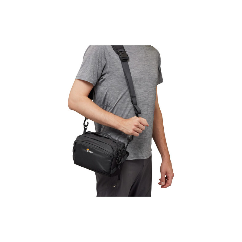 Lowepro ProTactic Lite SLX 110 AW III (4L) е компактна, изключително адаптивна чанта, създадена за съвременни фотографи, използващи безогледални камери. С капацитет от 4 литра, тя предлага достатъчно пространство за пълноформатна безогледална камера с прикачен 24-70mm обектив, като същевременно осигурява бърз достъп и ефективна организация.