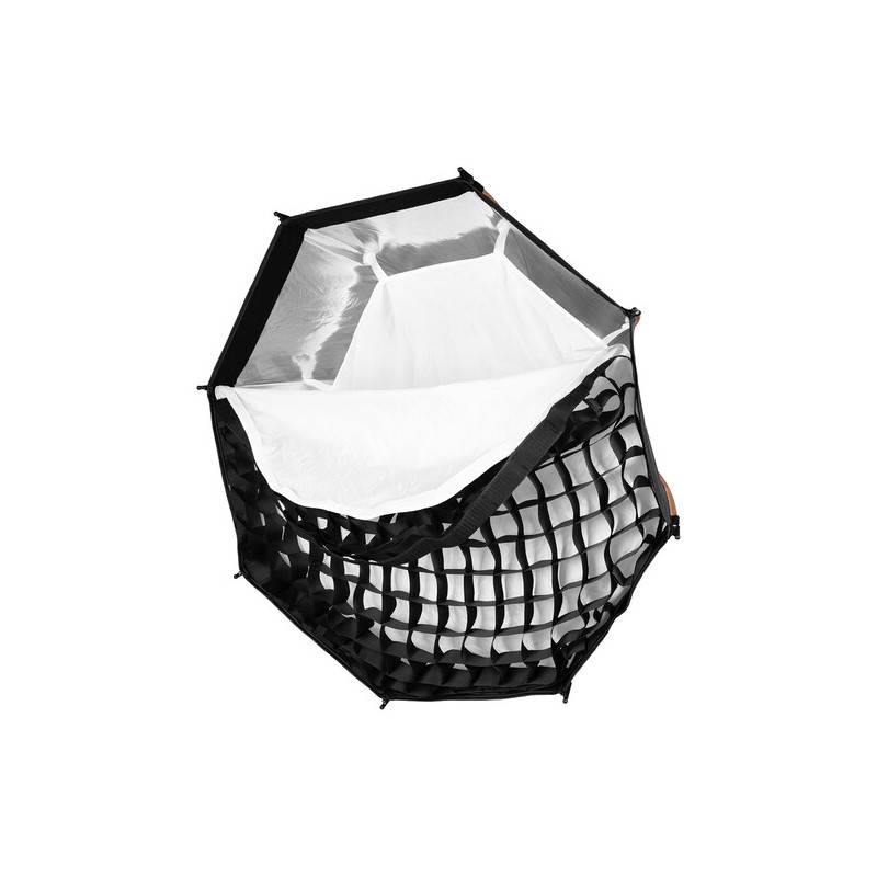 Системата с бързо освобождаване позволява инсталиране и сгъване на модификатора само за 15 секунди. Включени са текстилен грид, 2 дифузни повърхности и чанта за транспортиране и съхранение.