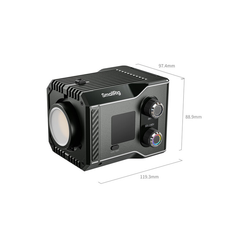 SmallRig RC 60C RGB COB LED Video Light поддържа пълна цветова настройка чрез HSI и RGBCW режими, както и зелен/пурпурен (G/M) баланс, което позволява фино настройване спрямо камерата или околното осветление. Сред професионалните параметри се отличават: