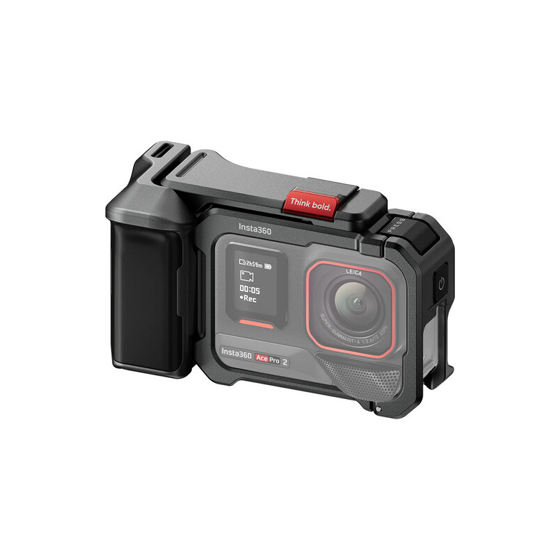 Комплектът Insta360 Ace Pro / Pro 2 Xplorer Grip включва алуминиева монтажна рамка и странична ръкохватка, които трансформират камерата в удобна за ръчно заснемане система с класическа визия.