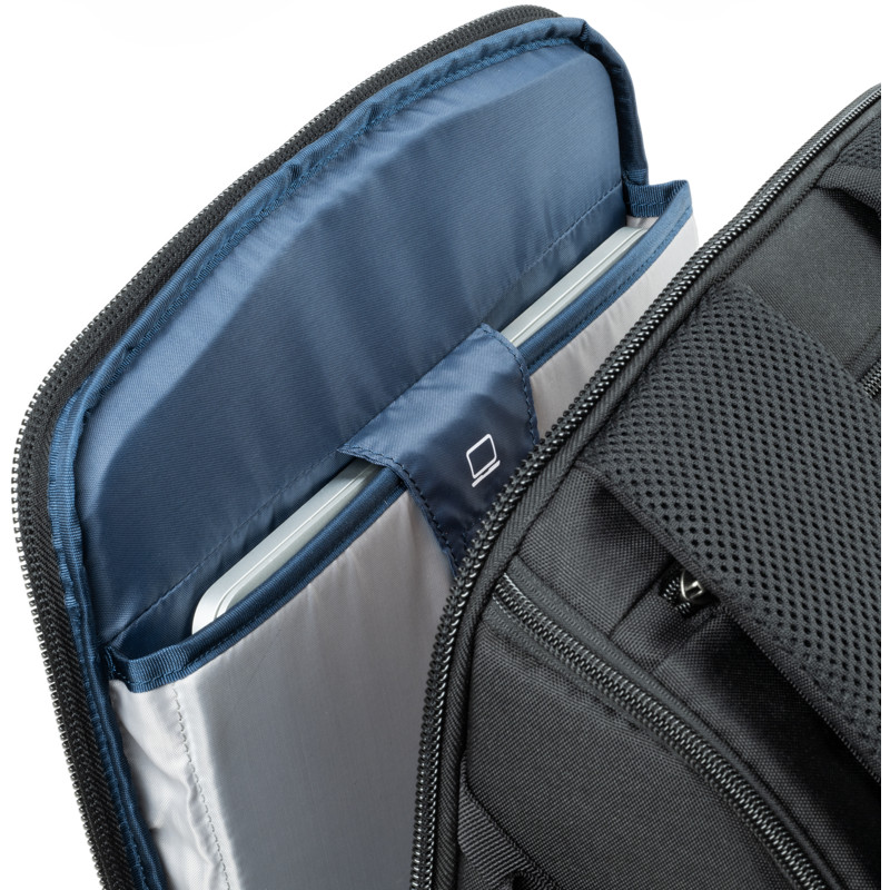 Ергономичната система за носене е с омекотени презрамки и гръб с AIR-mesh панели, които осигуряват комфорт и вентилация дори при целодневно носене. Допълнително удобство предоставят подвижният колан, горният джоб за лични вещи, както и специалните отделения за таблет (10”) и лаптоп до 16” MacBook Pro.