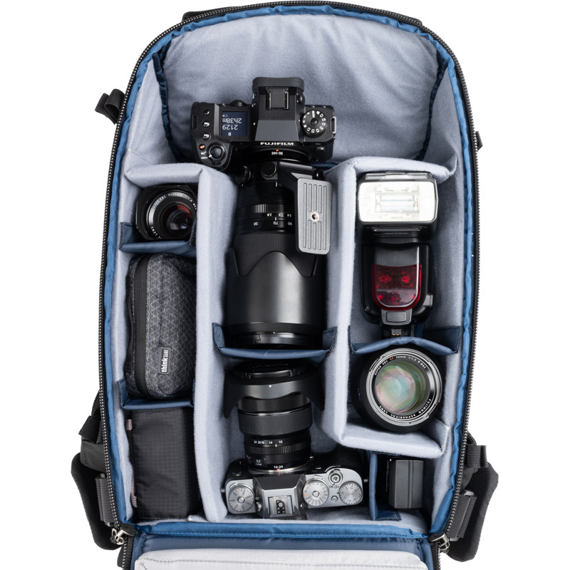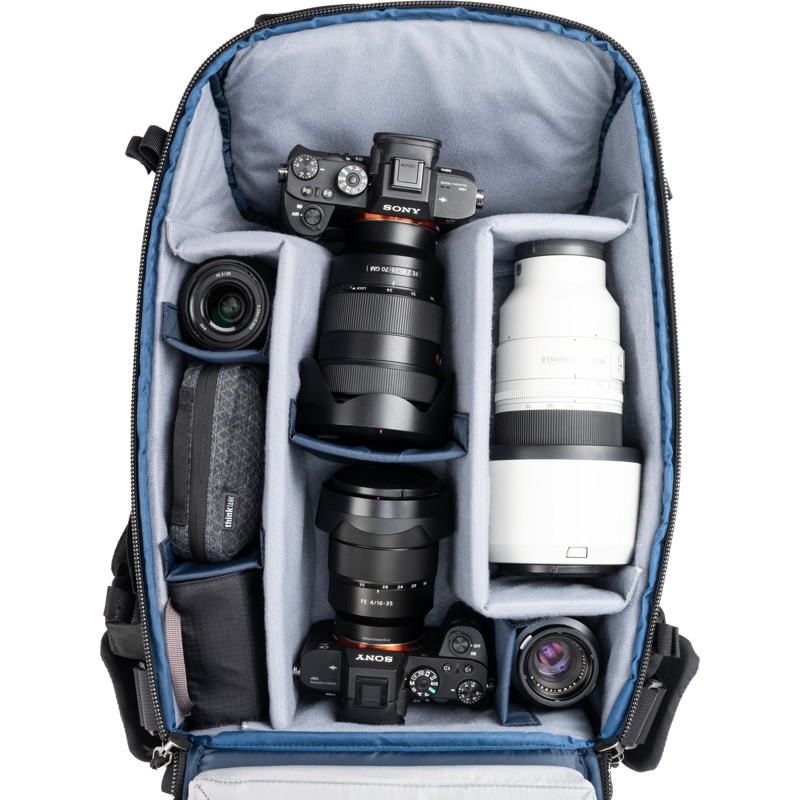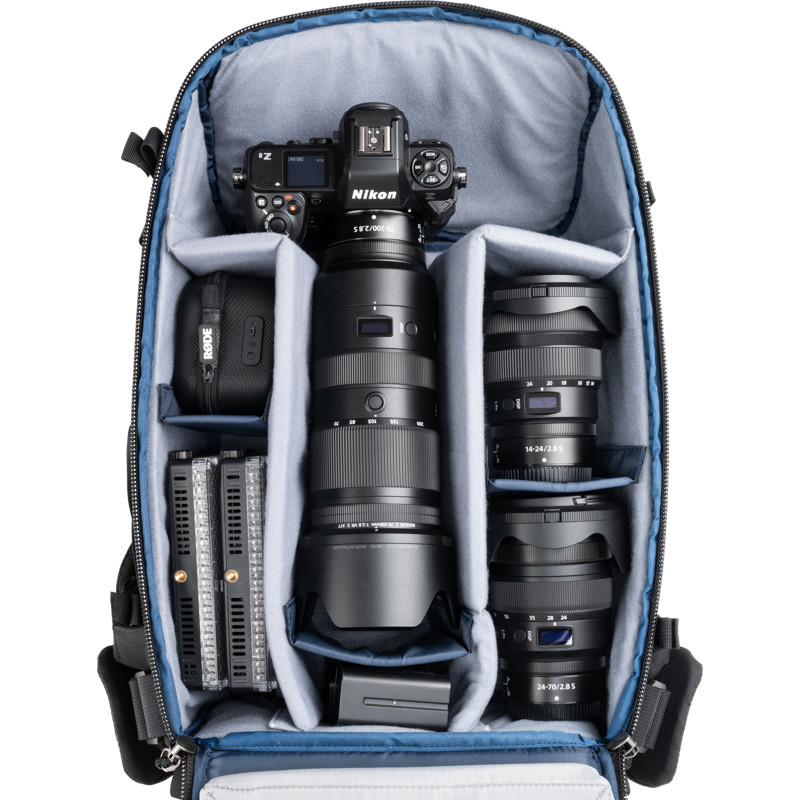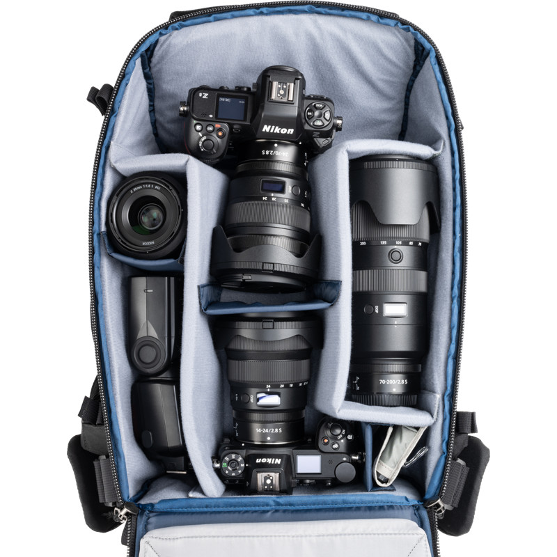 DarkLight 20L предлага интелигентно организирано пространство за две камери с монтирани обективи и допълнителни 2–3 обектива или един фотоапарат с по-голям набор обективи (до 5 броя). Раницата побира телеобективи до 300 мм f/2,8 или 150–600 мм f/5–6,3, което я прави подходяща за професионални фотографи, снимащи спорт, природа или събития.