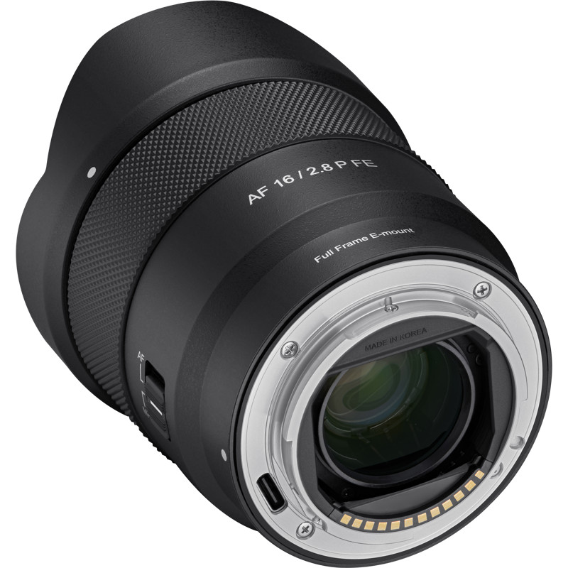 Ултраширокоъгълният фиксиран обектив Samyang AF 16mm F2.8 P FE е предназначен за пълноформатни безогледални камери с байонет Sony E. Със своята фокусна дължина от 16 mm и зрителен ъгъл от над 100°, той предлага впечатляваща перспектива и обхват е идеален избор за пейзажи, архитектура, интериорна фотография и креативно видеосъдържание.