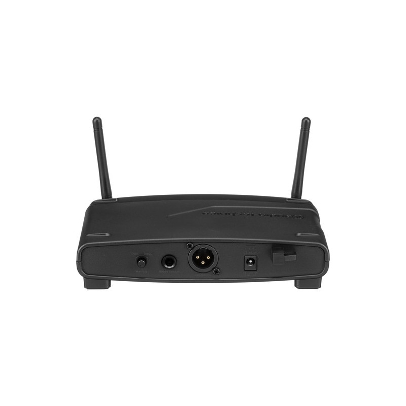 Комплектът включва ръчен предавател с вграден микрофон и компактен приемник, който се захранва чрез USB или адаптер. Предавателят използва две AA батерии и е с тегло 280 г, което осигурява удобен захват и лесно управление по време на изпълнение. Цифровата технология на системата работи в 2,4 GHz диапазон, без нужда от лиценз, и предлага стабилен сигнал на разстояние до 30 метра без препятствия, като минимизира смущенията от други безжични устройства.