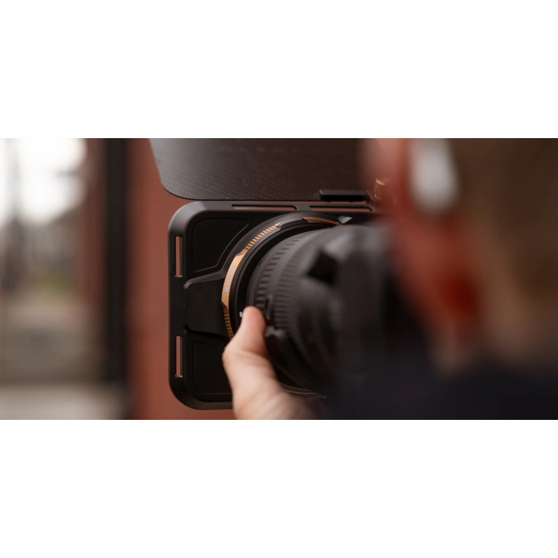 VND филтърът (Variable Neutral Density) с диапазон от 3 до 6 стопа е с диаметър 82 mm и се завинтва директно към обектива. Неговите оптични стъкла CinemaSeries™ гарантират минимално цветово изкривяване и изключителна рязкост. Вградената Quick-Lock Stage 2 система позволява мигновена смяна на филтрите без инструменти, което прави процеса бърз и интуитивен дори при динамични снимачни условия.