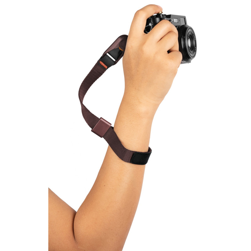 Camera Cuff Wrist Strap може да се носи като гривна на ръката в случаите, в които не се използва благодарение на магнитната закопчалка. Освен това ремъкът предлага автоматична защита при нежелано изпускане на техниката като се затяга около китката.