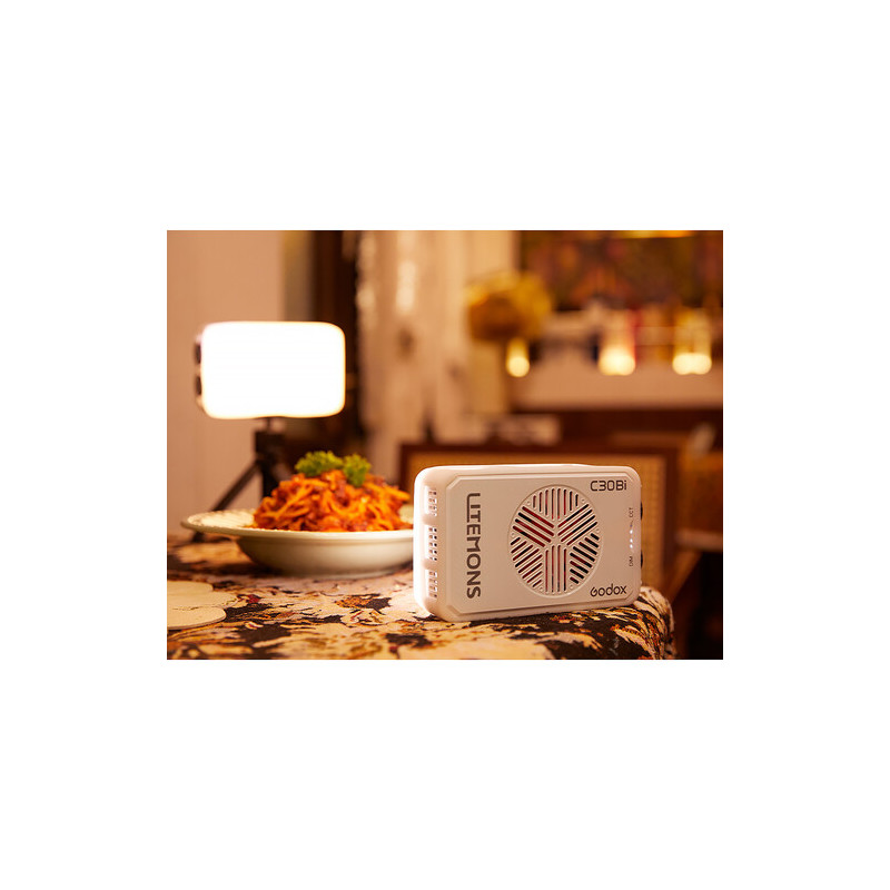 Компактното Godox Litemons C30Bi Color Pocket Led Light е LED осветление с Bi-Color режим (2800–6500 K) и CCT контрол. Той осигурява гъвкаво и прецизно осветление за видео, фотография и креативни проекти, комбинирайки компактност, мобилност и висококачествена светлина. Батерията позволява до 45 минути работа на пълна мощност, което го прави идеален за мобилни сетъпи и бързи снимки на открито.