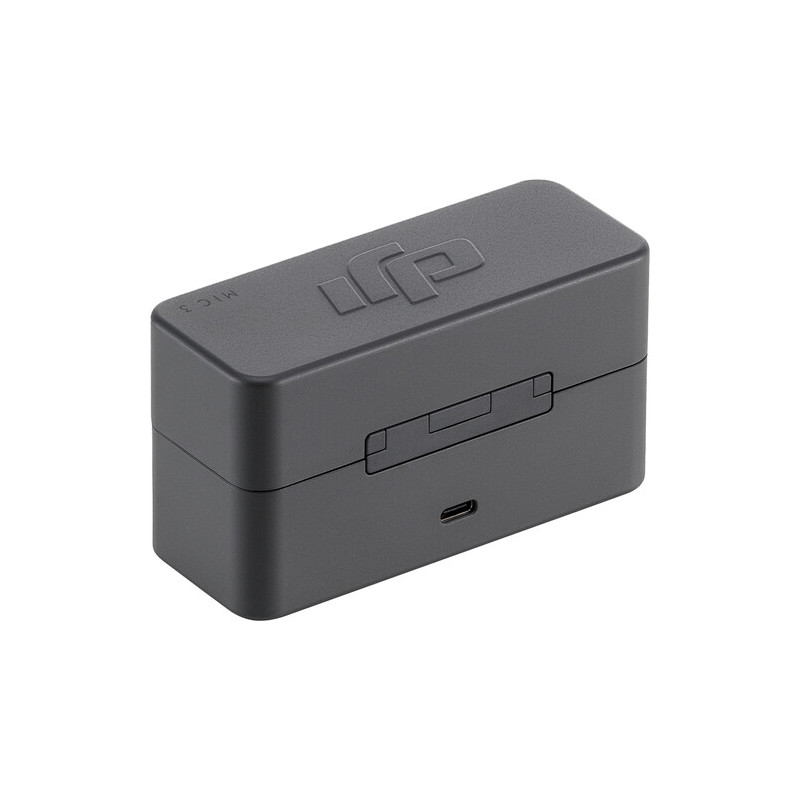 DJI Mic 3 Charging Case е с размери 106,30 × 42,50 × 59,20 мм и тегло от 164,1 г, което го прави лесен за пренасяне и съхранение. Вътрешността му е проектирана така, че да побере един приемник и два предавателя, като всеки предавател може да се съхранява с прикрепен вятърозащитен капак и магнитен клип, без да е необходимо да се свалят.