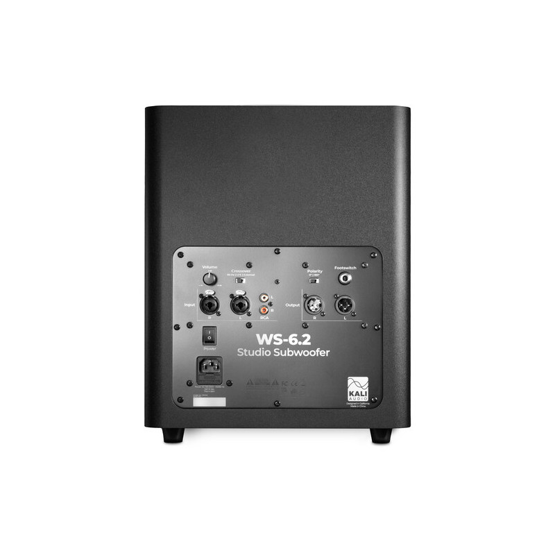 Kali Audio WS-6.2 е оборудван с балансирани XLR и TRS входове, както и RCA вход за по-широка съвместимост. Изходите XLR позволяват директно свързване към монитори, като кросоувърът може да бъде зададен на 80 Hz, LFE или външен режим. Налична е и функция за обръщане на полярността (0°/180°), както и limiter защита, която предпазва системата от претоварване.