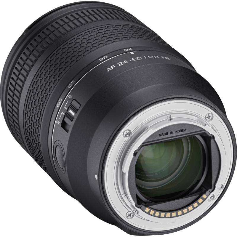 Стандартният зум обектив Samyang AF 24-60mm F/2.8 FE е предназначен за пълноформатни камери със Sony E байонет. Създаден в сътрудничество със Schneider-Kreuznach, той комбинира висок клас оптична конструкция с постоянна светлосила f/2.8, компактни размери и леко тегло. Тази комбинация го прави надежден избор за фотографи и видеографи, които искат качество, гъвкавост и удобство в един обектив.