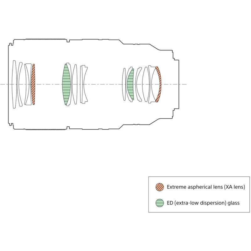 Конструкцията на обектива е внимателно проектирана, за да минимизира оптичните изкривявания. Две екстремно асферични лещи и два елемента с изключително ниска дисперсия гарантират висока разделителна способност от центъра до периферията на изображението, като намаляват хроматичните аберации и други изкривявания. Резултатът е отчетливост и прецизност във всяка снимка – от малките детайли до текстурата в дефокуса.