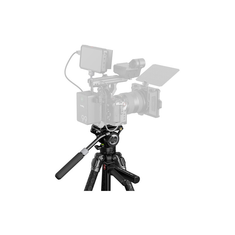 Главата на статива предлага плавно движение по панорама и наклон, като има Flat Base с 3/8"-16 Female монтажна точка за сигурно закрепване на камерата и аксесоари. Включената регулируема дръжка осигурява фин контрол върху движението, а бързосменяемата плочка с двоен заключващ механизъм гарантира сигурен монтаж на камерата при динамична работа.