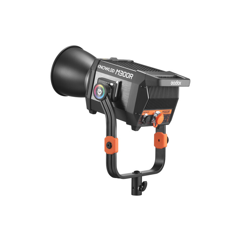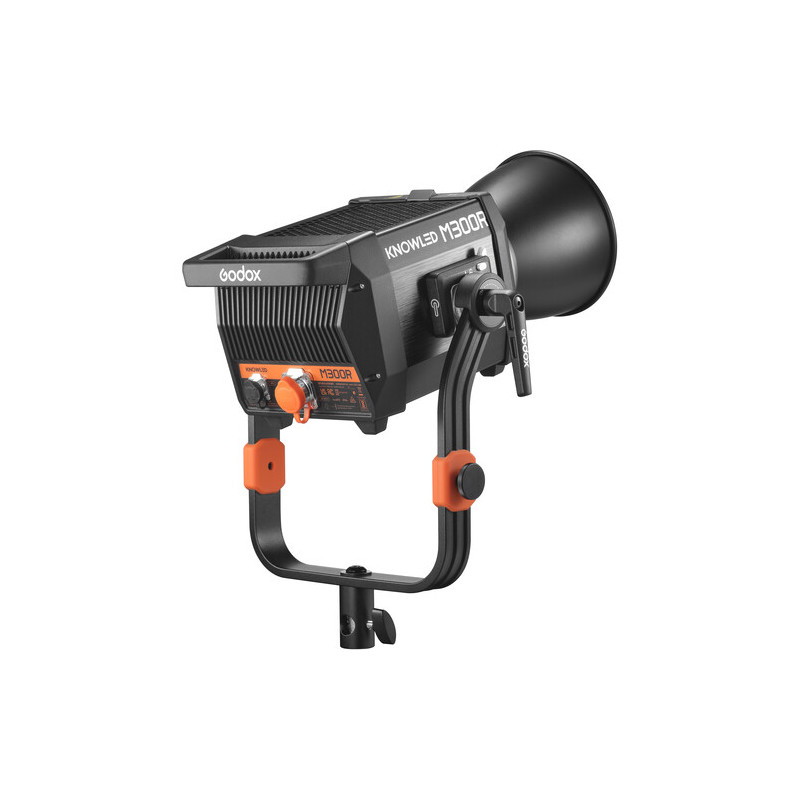 KNOWLED M300R RGB LED Light може да се захранва от стандартната електрическа мрежа с различни напрежения или опционално от V-Mount батерии, което го прави мобилен и подходящ за работа на открито.