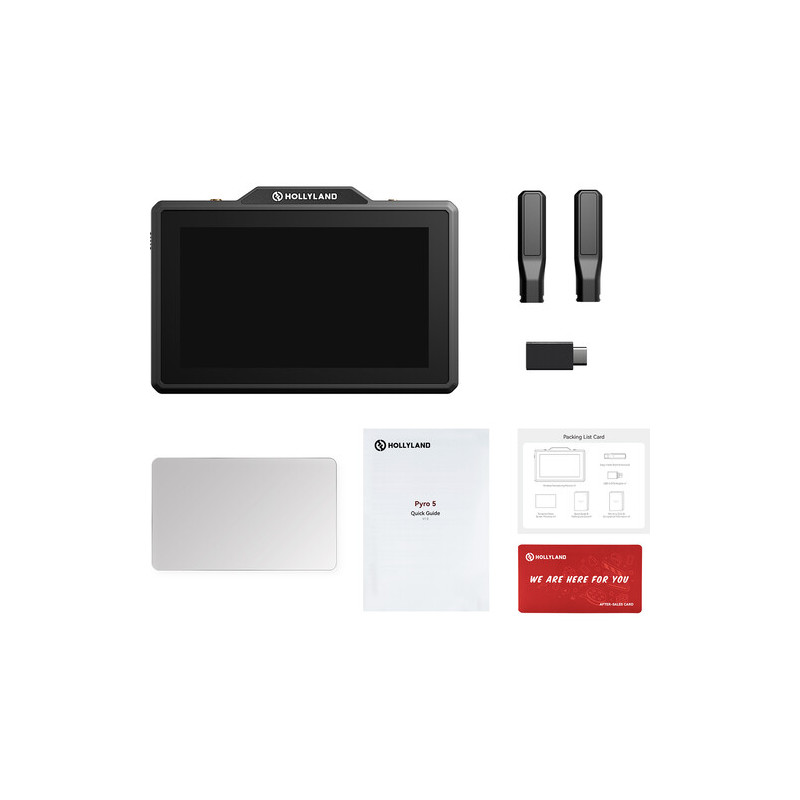 Hollyland Pyro 5 е създаден за динамична работа на снимачната площадка. Сензорният 5.5-инчов LCD дисплей предлага ярка и детайлна картина с отношение 16:9 и пикселна плътност приблизително 400 ppi. Мониторът позволява работа с HDMI 1.4b и 3G-SDI входове и изходи, включително loop-through, което улеснява интеграцията с различни професионални камери и студийни системи. Освен наблюдение, устройството поддържа директен запис на SD карта, което позволява архивиране на кадри и създаване на прокси файлове за последваща обработка.