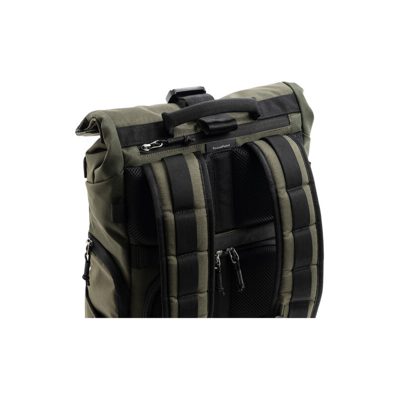 Основното ѝ предимство е гъвкавият rolltop дизайн, който позволява увеличаване или намаляване на обема според нуждите. Благодарение на висококачествените водоустойчиви материали и подсиленото дъно, Focus Point Rolltop 22L защитава техниката от влага, прах и механични удари, без да прави компромис с теглото или удобството. Вътрешното пространство е оптимизирано с модулни разделители, които позволяват индивидуална конфигурация за различни видове оборудване от Full Frame фотоапарати и видео камери до дронове, светкавици и обективи.