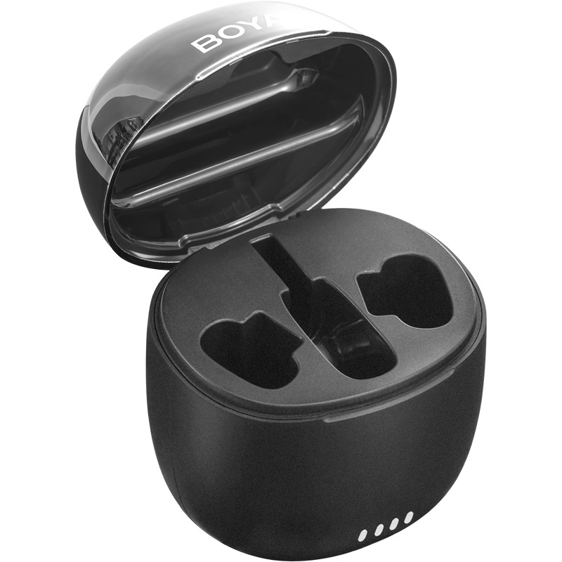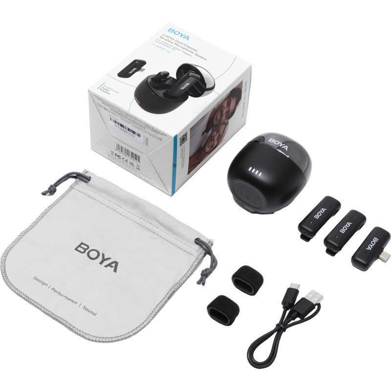 Комплектът включва зарядно калъфче, което съхранява и зарежда двата предавателя и приемника едновременно, гарантирайки, че устройствата са винаги готови за работа. BOYA BY-WM3T-U2 разполага с автоматично сканиране на канали и синхронизация между предаватели и приемник, което улеснява настройката и употребата.