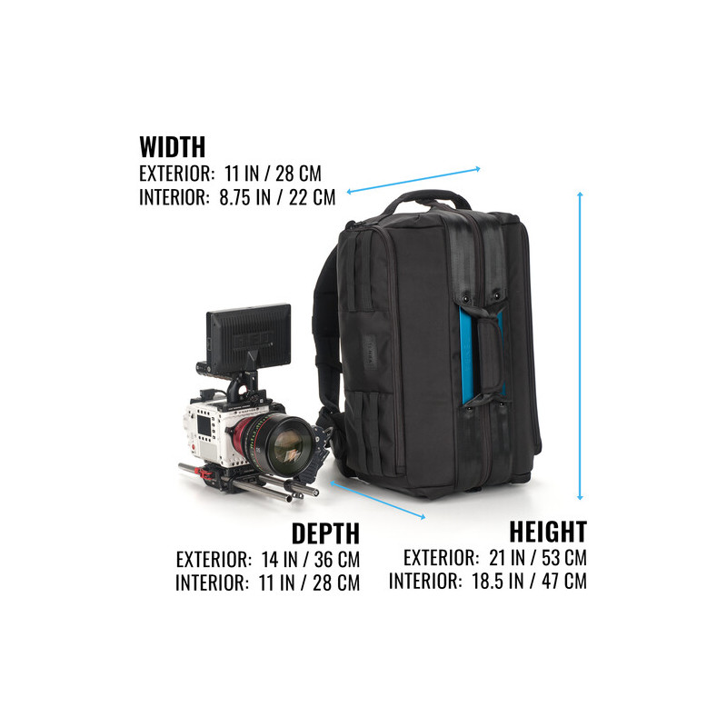 Раницата е проектирана така, че да побира професионални видеокамери и кино конфигурации с дължина до 47 см, включително модели от RED, Blackmagic, Sony, Canon и други. За разлика от повечето чанти, Cineluxe V2 позволява камерата да остане в напълно сглобено състояние.