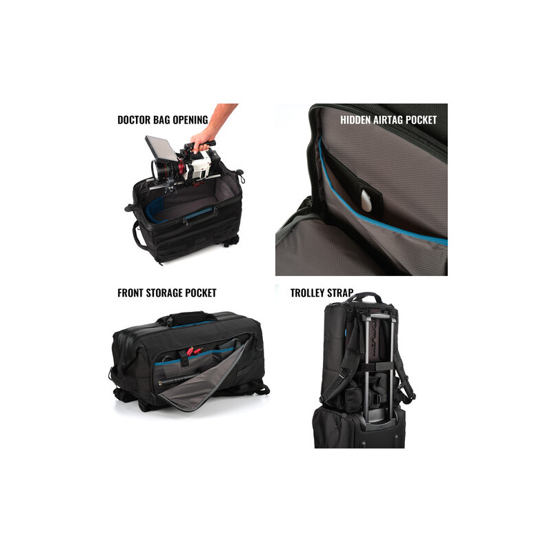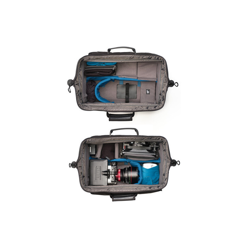 Уникалната система за отваряне тип "Doctor Bag" осигурява изключително широк и ясен достъп до техниката, което е особено полезно при работа в динамична среда. Вътрешността е добре организирана с регулируеми разделители, защитни възглавници за обективи и малки аксесоари.
