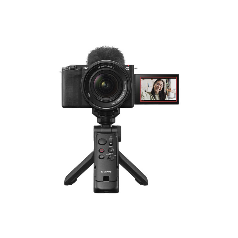 Аксесоарът Sony GP-VPT3 е грип и мини статив, предназначен за избрани Sony камери с Bluetooth, който осигурява безжично управление чрез подвижно дистанционно с обхват до 10 м, позволявайки контрол за снимки и видео без докосване на камерата; разполага с интегриран спусък (Shutter/Record), Zoom/Focus бутон, програмируем C1 бутон и AF ON/OFF контрол, като камерата се монтира чрез стандартна 1/4"-20 резба, а накланящата се глава предлага вертикален диапазон от +80° до -90° и пълна 360° ротация за гъвкаво кадриране; конструкцията е устойчива на атмосферни влияния и позволява лесно трансформиране от ръкохватка в настолен мини статив.
