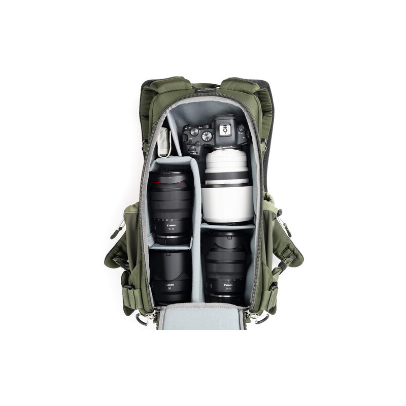 Раницата Think Tank MindShift BackLight Sprint Slim е лека и компактна фотографска раница, създадена за активни фотографи, които искат бърз достъп до техниката си без да свалят раницата. Благодарение на достъпа през задния панел, фотооборудването остава защитено от прах и влага, докато сменяте обективи в движение. Вътрешното пространство е оптимизирано да побере Full Frame безогледална камера с до пет обектива и допълнителни аксесоари, като регулируемите подплатени разделители позволяват прецизна организация според вашия сетъп.