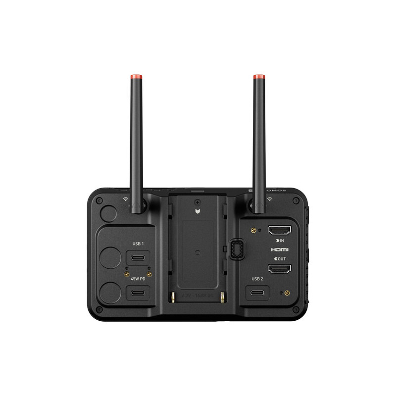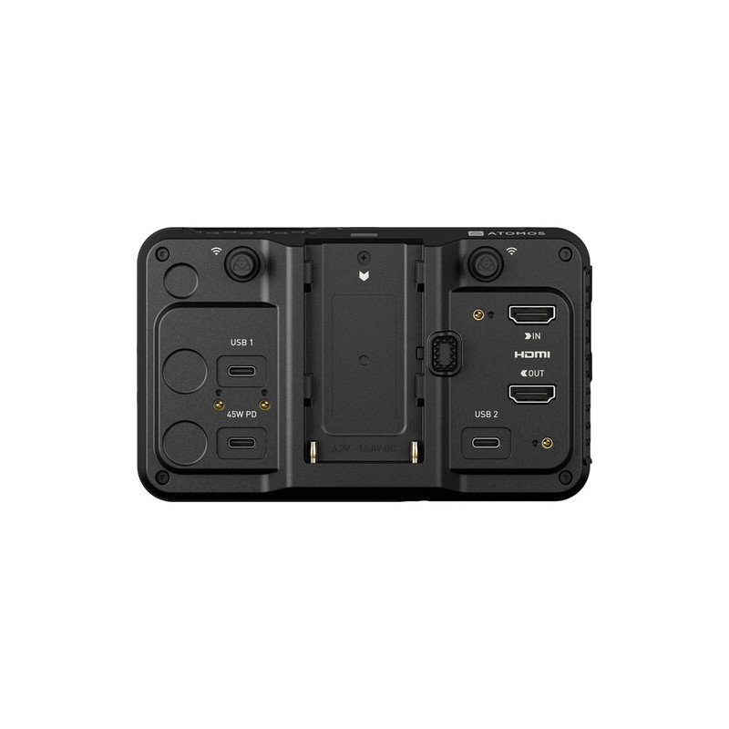 Безжичната свързаност чрез Wi-Fi 6E позволява дистанционно управление и мониторинг през приложението AtomRemote за iOS, а вградените антени улесняват интеграцията в съвременни безкабелни работни процеси. Захранването е реализирано чрез L-series батерия или USB-C вход, като консумацията е оптимизирана за работа на терен. Здравият корпус от алуминий и пластмаса, заедно с ARRI anti-twist монтажните точки, осигуряват стабилност и сигурност при монтаж върху камера риг или статив.