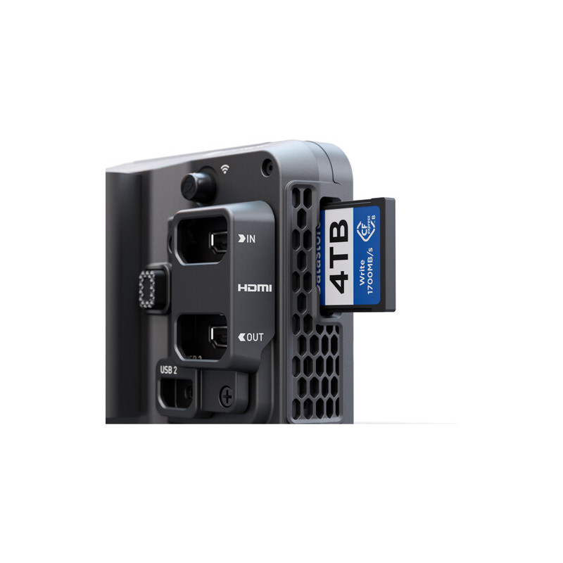Ninja TX Go приема и извежда сигнал чрез HDMI 2.0 и поддържа широк набор от формати от Full HD до UHD и DCI 4K при 60p, както и 6K RAW запис до 60p в зависимост от камерата. Записът се осъществява върху CFexpress Type B карта със съвместимост до 4 TB, което осигурява изключително високи скорости и надеждност при работа с тежки формати като ProRes, ProRes RAW, DNxHR и H.265. Това решение прави устройството подходящо за дълги снимачни сесии без необходимост от честа смяна на носителя.