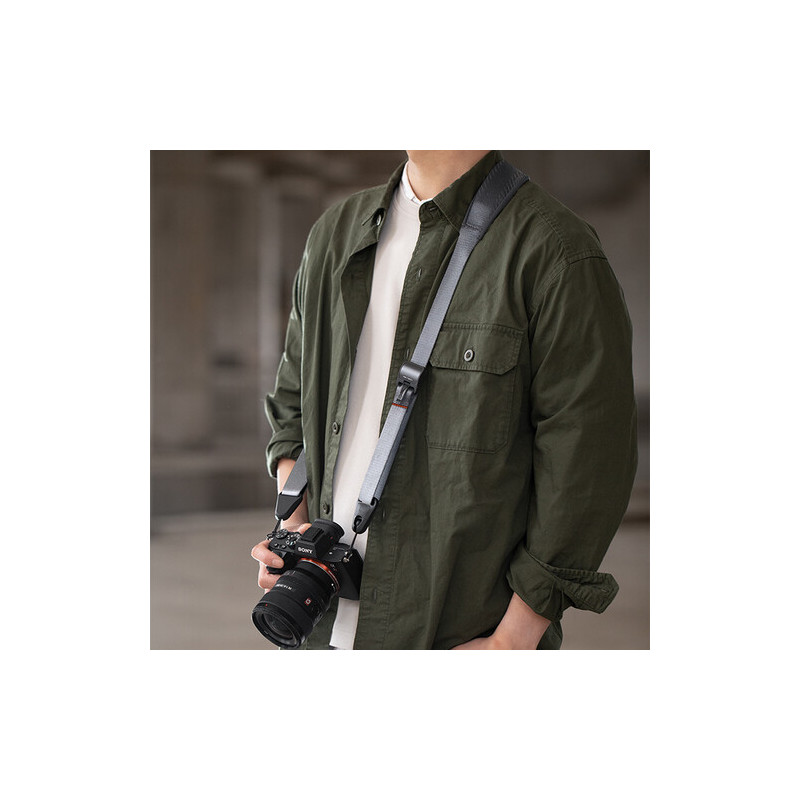 Регулируемата дължина на ремъка e от 95 см до 110 см и конектори тип анкер, които дават възможност за бързо и лесно свързване и откачане на камерата.