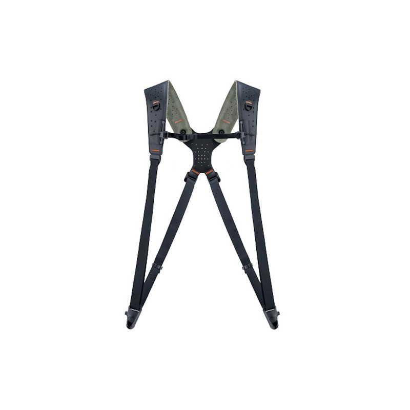 Материалите са подбрани без компромис. Примките са изработени от UHMWPE – термопластичен полиетилен, който е до 10 пъти по-здрав от стоманено въже, устойчив на абразия и способен да издържи натоварване до 90 кг. Самата презрамка използва EPDM подплънки с висока еластичност и 115 вентилационни отвора, които осигуряват отлична циркулация на въздуха и комфорт при дълги снимачни сесии.