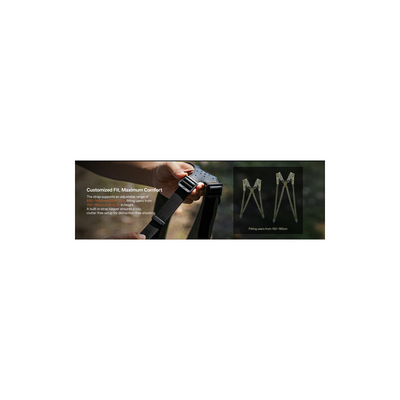 Допълнителни практични детайли като подвижна гръдна лента за по-добра стабилност, предни разширителни ремъци за допълнителна екипировка (бинокли, аксесоари), D-ring клипс за малки принадлежности и T-buckle система за плавно регулиране превръщат PGYTECH Camera Shoulder Strap Master в завършено и професионално решение за носене на техника.