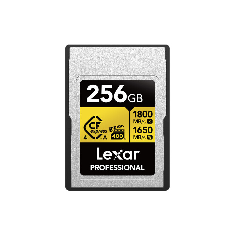 Картата Lexar CFexpress Gold 4.0 256GB Type A е бърза и надеждна карта памет с капацитет 2TB и поддържа максимални скорости на четене и запис, съответно 1800MB/s и 1650MB/s. С минимални постоянни скорости на запис от 140MB/s тя гарантира безпроблемен видеозапис през цялото време.
