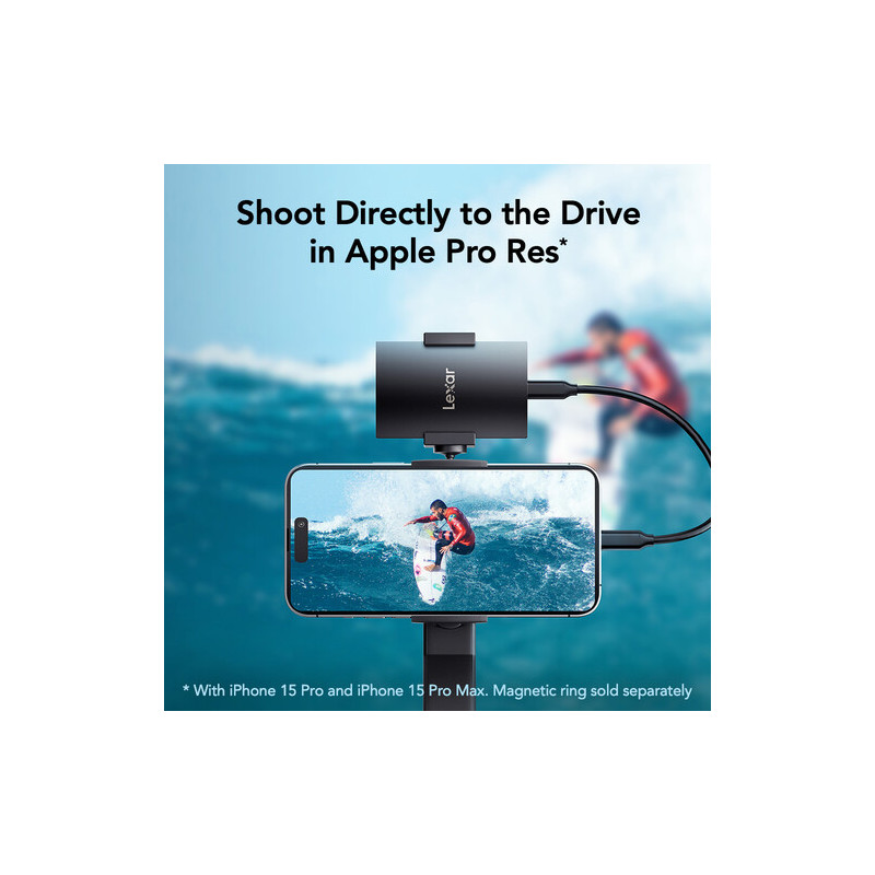 Преносимият SSD Lexar SL500 поддържа Apple Pro Res запис. Снимайте директно към устройството с до 4K 60к/сек. с iPhone 15 Pro и iPhone 15 Pro Max. SSD дискът е съвместим с PC, Mac, устройства с Android, серия iPhone 15, игрови конзоли, камери и др.
