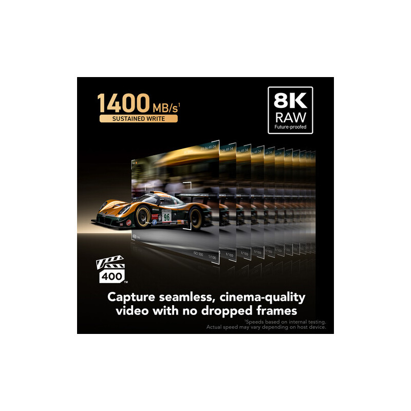 Lexar CFexpress Gold 4.0 2TB Type A заснема 8K RAW видео с лекота. Картата е устойчива на екстремни температури (до 85°C), удар и вибрации.