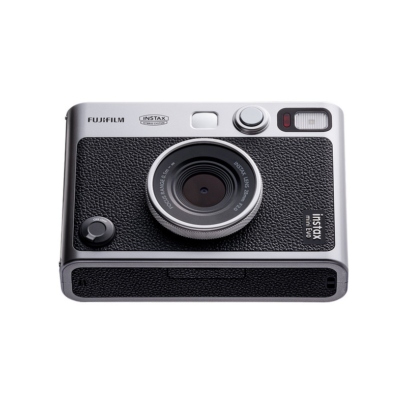 Fujifilm Intax Mini Evo е хибриден фотоапарат, който заснема цифрови изображения и създава хартиени моментални снимки. Моделът позволява да снимате колкото искате и да решавате кои кадри да бъдат репродуцирани по традиционния метод като моментални снимки. Fujifilm Intax Mini Evo използва оригиналните фото филми Fujifilm Instax Mini с размер на изображението 62 x 46 mm.