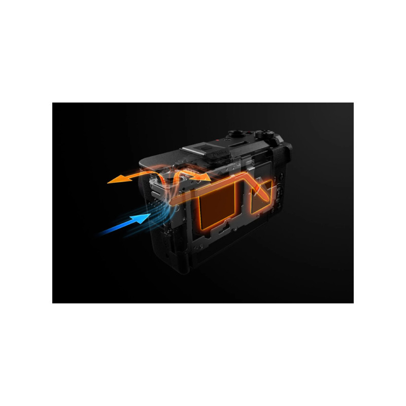- Система за активно охлаждане, позволяваща непрекъснат запис на 4K видео без риск от прегряване