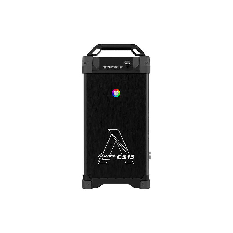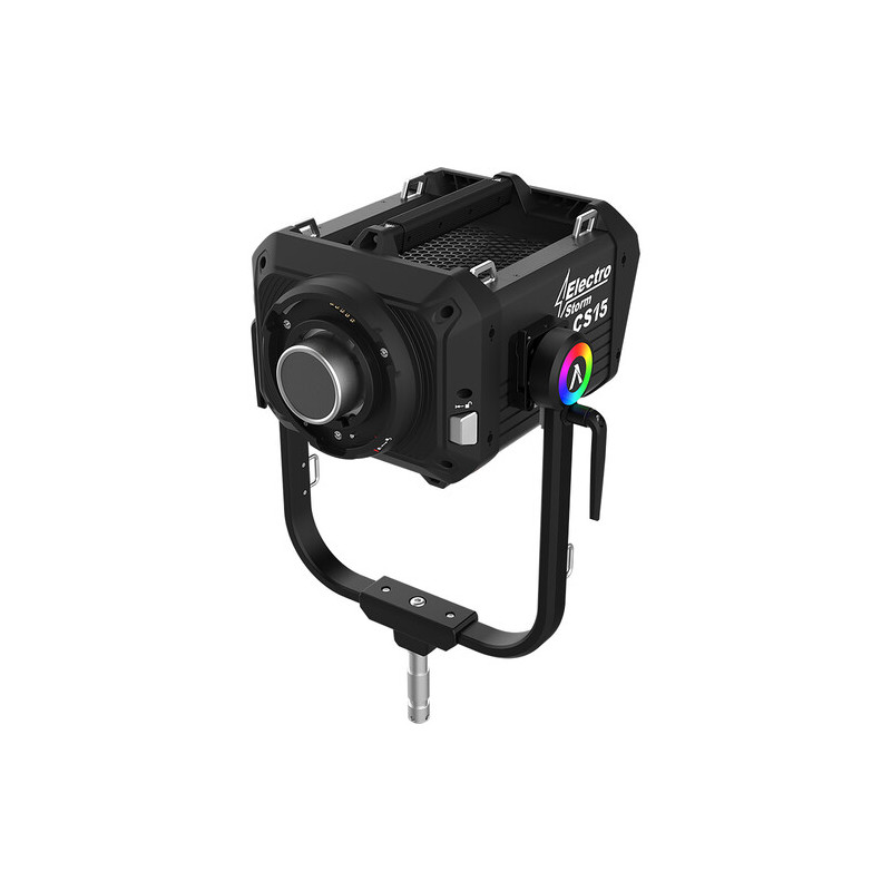 Захранването се осъществява чрез външен контролер и AC вход (100–240V, 50/60 Hz) или 48V DC, като е възможно използване на батерийна станция (не е включена). Монтажът се реализира чрез ръчно регулируем йок с 1-1/8" Junior pin, подходящ за тежки осветителни стойки. С размери 45.7 x 35.2 x 28.1 cm (без йок) и тегло 18 kg за тялото, Electro Storm CS15 е солидно професионално решение, предназначено за сериозни продукционни среди, където мощността, надеждността и цветната точност са от ключово значение.