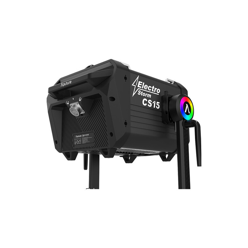 Осветлението Aputure Electro Storm CS15 е високоефективно професионално RGB LED насочено осветление, създаден за мащабни кино и телевизионни продукции, рекламни снимачни площадки и висок клас студийни проекти, където се изисква максимална светлинна мощност, прецизен цветови контрол и надеждна работа в тежки условия. С консумация до 2200 W и номинална мощност 1500 W, CS15 осигурява изключително силен светлинен поток, достигащ до 293,400 lux на разстояние 1 метър при 5600K с включения рефлектор, което го позиционира сред най-мощните LED решения в своя клас.