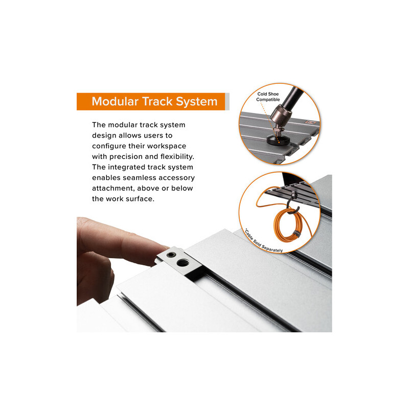 Аксесоарът Tether Tools ATWS-ProKit AeroTrac Workstation Pro Kit е разширен професионален комплект, създаден за фотографи и видеографи, които изискват максимална стабилност, модулност и организация при работа в режим tethered capture. Това е цялостна релсова работна станция, оптимизирана за интензивна студийна и теренна употреба, при която лаптопи, външни монитори, захранвания и аксесоари трябва да бъдат разположени сигурно и логично.