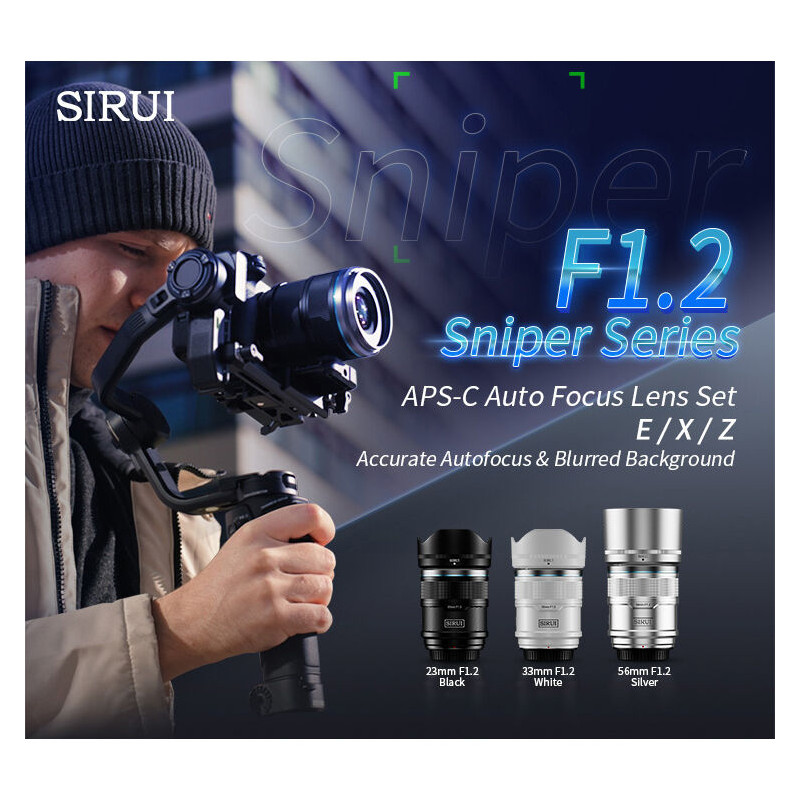 Обективът Sirui Sniper Series APS-C AF 23mm f/1.2 е висококачествен светлосилен фиксиран обектив, създаден за фотографи и видеографи, които търсят комбинация от компактност, модерни технологии и изразителна визуална естетика. Фокусното разстояние от 23 mm е еквивалентна на 35 mm (спрямо Full Frame) като предлага универсален зрителен ъгъл подходящ за улична и документарна фотография, както е изключително подходящ и за видео.