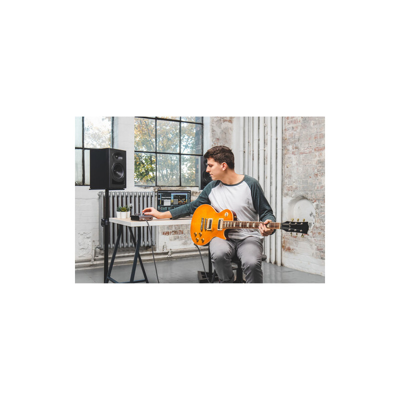 Интерфейсът работи с резолюция до 96 kHz / 24-bit и използва висококачествени A/D и D/A конвертори с динамичен диапазон до 120 dB при вход и 125.5 dB при изход. Честотната характеристика е линейна от 10 Hz до 40 kHz, което осигурява детайлен и прозрачен звук както при запис, така и при мониторинг. Ниските стойности на THD+N и високото SNR допринасят за чиста и неоцветена аудио картина.