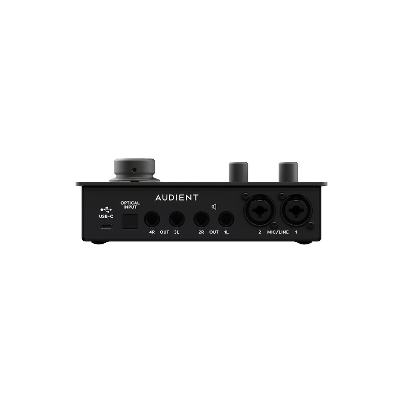 Интерфейсът разполага с два комбинирани XLR/¼" TRS микрофонни/линейни входа, оборудвани с микрофонни предусилватели, базирани на конзолната технология на Audient. Всеки предусилвател предлага до 58 dB усилване и много нисък собствен шум с EIN от -129 dBu A-weighted, което позволява чист и детайлен запис дори с динамични микрофони с по-ниска чувствителност. Индивидуално превключваемата фантомна мощност 48 V на всеки вход осигурява пълна свобода при използване на кондензаторни микрофони.