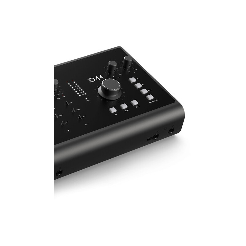 За разлика от по-малките модели, iD44 MKII използва външно захранване, което гарантира стабилна работа при натоварени конфигурации и множество свързани устройства. Интерфейсът е съвместим с macOS и Windows и е проектиран като дългосрочно решение за професионална студийна работа.