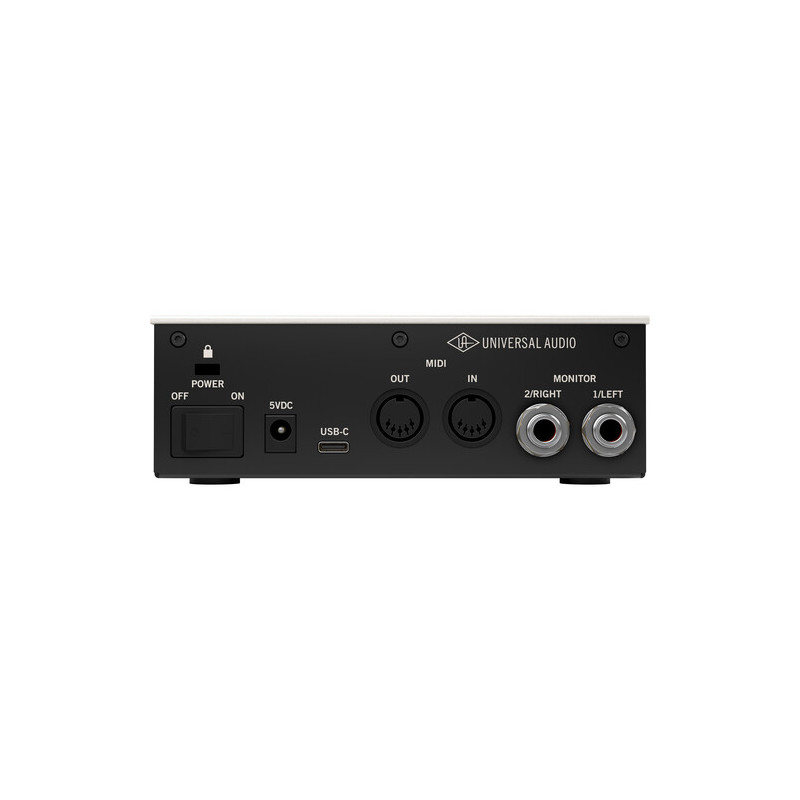 За мониторинг са налични два балансирани 1/4" TRS изхода за студийни монитори, както и отделен 1/4" жак за слушалки на предния панел. Това осигурява удобство както при домашни записи, така и в малки студийни конфигурации. Устройството разполага и с MIDI вход и изход (5-пинов DIN), което позволява интеграция на външни MIDI клавиатури, контролери и синтезатори.