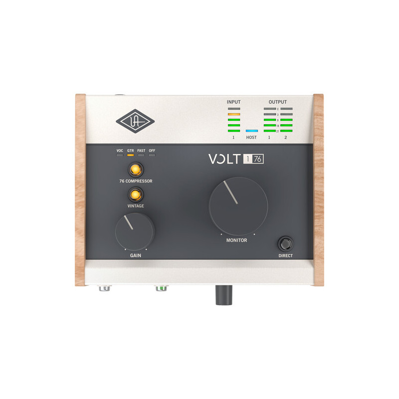 Аудио интерфейсът Universal Audio Volt 176 е компактен USB аудио интерфейс с 1 вход и 2 изхода, който комбинира професионално качество на запис с вграден аналогов компресор, вдъхновен от класическите студийни 1176 схеми на Universal Audio. Това го прави изключително подходящ избор за вокали, китара, бас, подкастинг и солови инструментални записи, където контролът върху динамиката е ключов още на етап входен сигнал.